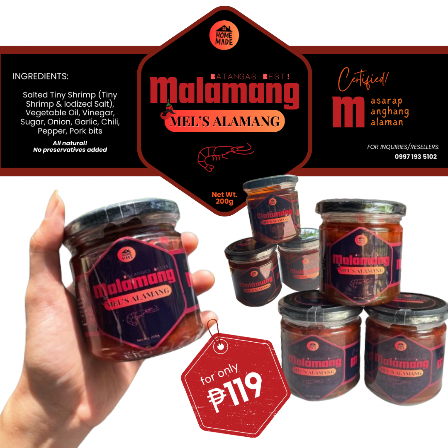 MEL's ALAMANG is made from PURE alamang. No extenders added.